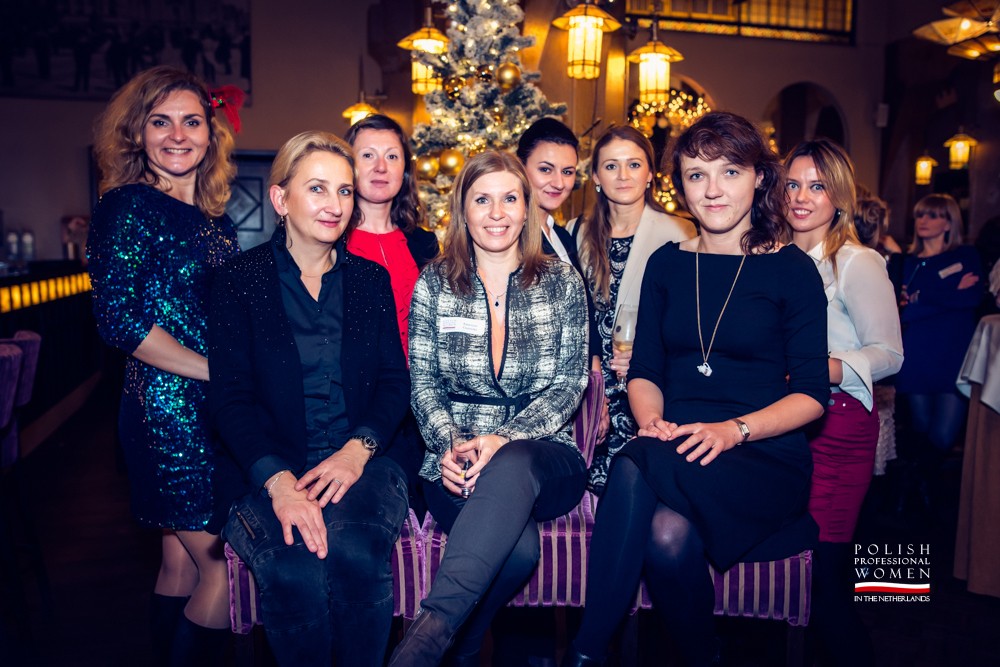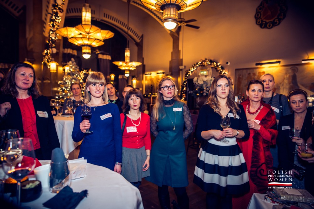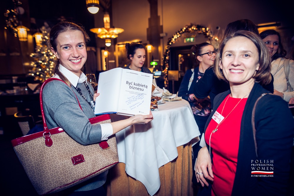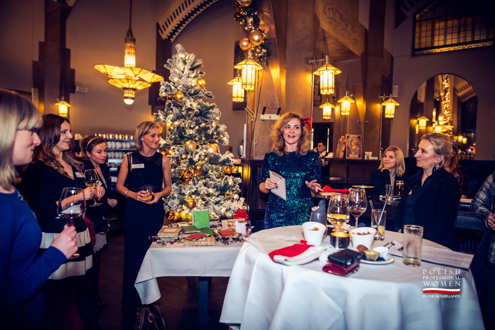 A było co świętować! W ciagu kilku miesięcy powstała inicjatywa, która zgromadziła sporą grupę aktywnych, wykształconych i ambitnych Polek, mieszkających i pracujących w Niderlandach. Za nami osiem spotkań, w tym pierwsze szkolenie i Power Show z Olgą Kozierowską. Żeby tradycji świątecznej stało się zadość, były też prezenty a w rolę Mikołajki wcieliła się nasza setna członkini. Wszystkie Panie otrzymały książki. Część z nich została podarowana stowarzyszeniu przez autorki, a każda książka była opatrzona dedykacją. Wśród pozycji znalazły się “Być kobietą biznesu’ Grażyny Białopiotrowicz, ‘Siła kobiet w biznesie’ Anety Chybickiej oraz ‘Polki’ Katarzyny Pawlikowskiej. Konrad Maj z Księgarni Psyche  podarował nam 4 książki, w tym publikację Szymona Majewskiego wraz z autografem, a stowarzyszenie zakupiło również pozycję Inte & Chiara Alfonso ‘Be a better you’. Wszystkim przybyłym serdecznie dziekujemy za obecność i wspieranie Polish Professional Women in the Netherlands.  Kolejne spotkanie już 20 stycznia, będzie to impreza otwarta, w której za odpłatą mogą wziąć udział goście. A teraz zdjęcia oczywiście! Fotorelacja z Xmas Drink uchwycona, przez Marylę Fossen, która wspierała nasze stowarzyszenie przez wiele miesięcy, a której miałyśmy okazję podziekować podczas imprezy i życzyć wspaniałej przygody w czasie zbliżającej się podróży.